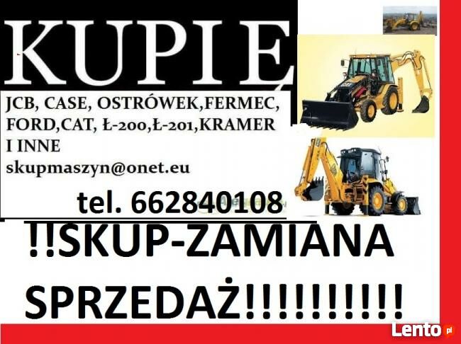 kupię każdą koparko-ładowarkę również uszkodzoną, spaloną na części, płacę gotówką-dojazd cały krajtel 662 - pokaż numer telefonu -